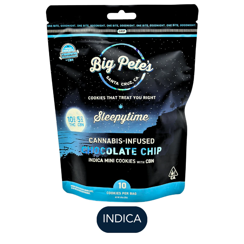 The Sleepytime CBN Cookie from Big Pete's Treats is a delicious chocolate chip cookie with the added benefits of CBN, a cannabinoid that promotes relaxation and aids in sleep. Made with cannabutter from premium Santa Cruz-grown cannabis, our slow-cook method extracts all the cannabinoids for a consistent and long-lasting high. Try the Sleepytime CBN Cookie today for a relaxing and delicious treat!