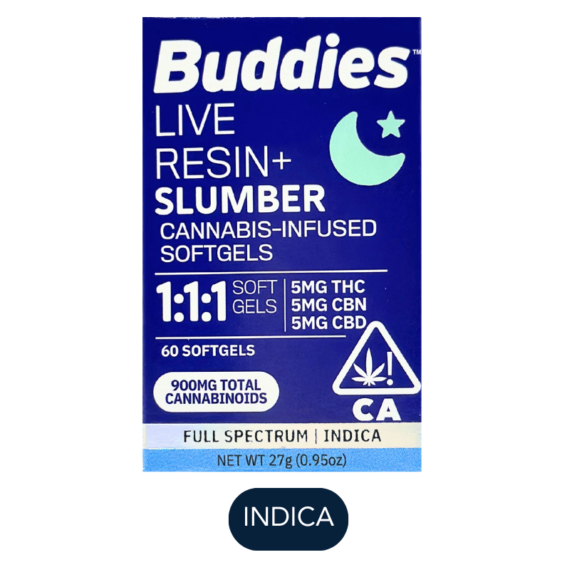 Liquid Live Resin Soft Gels. These pharmaceutical grade soft gels are made with Buddies strain-specific, 100% live resin for a full spectrum cannabis experience. Ingredients: Gelatin, Glycerine, MCT Oil, Cannabis Extract