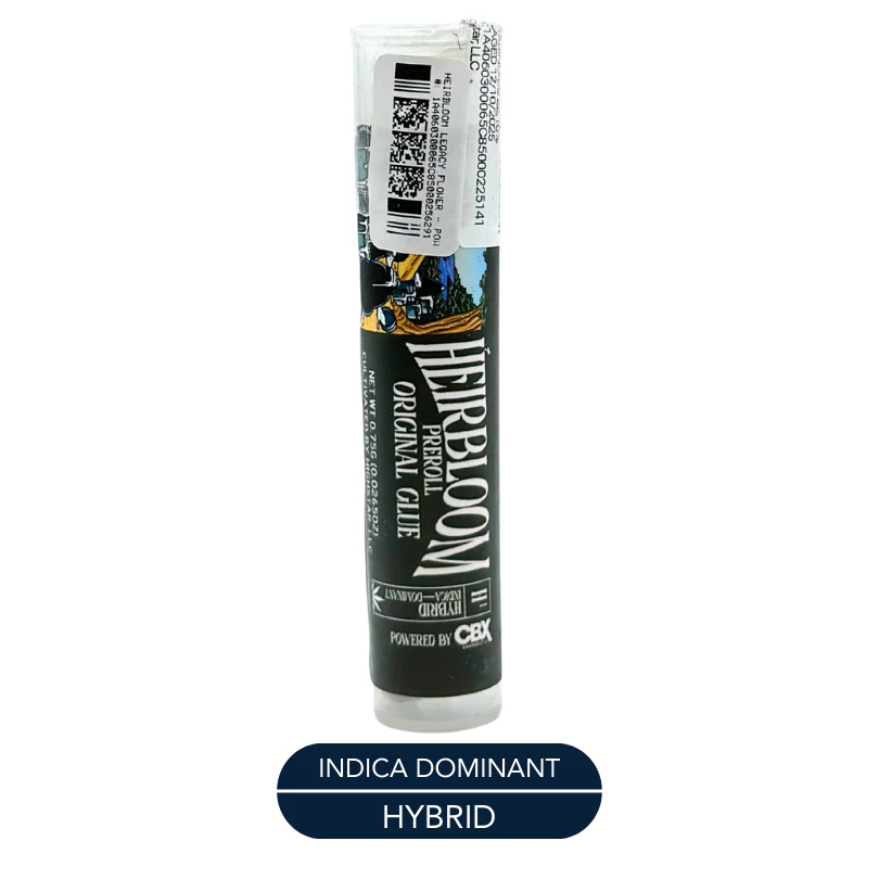 Heirbloom Legacy Flower - Powered by Cbx - Original Glue - Preroll - 0.75g