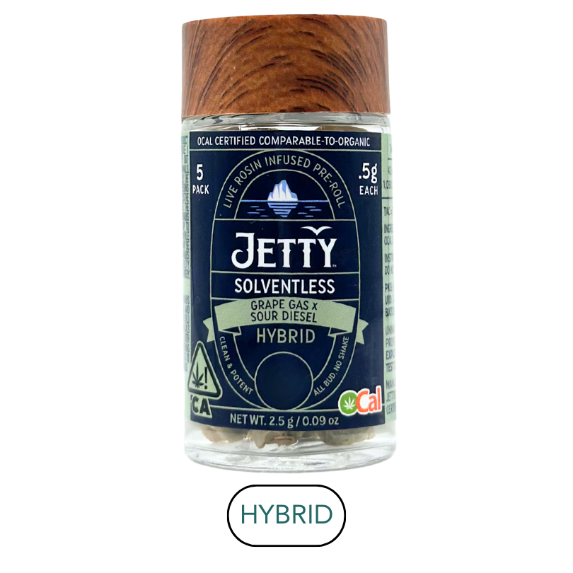 Jetty - Solventless - Grape Gas x Sour Diesel - Infused Preroll Pack - 5pk - 2.5g