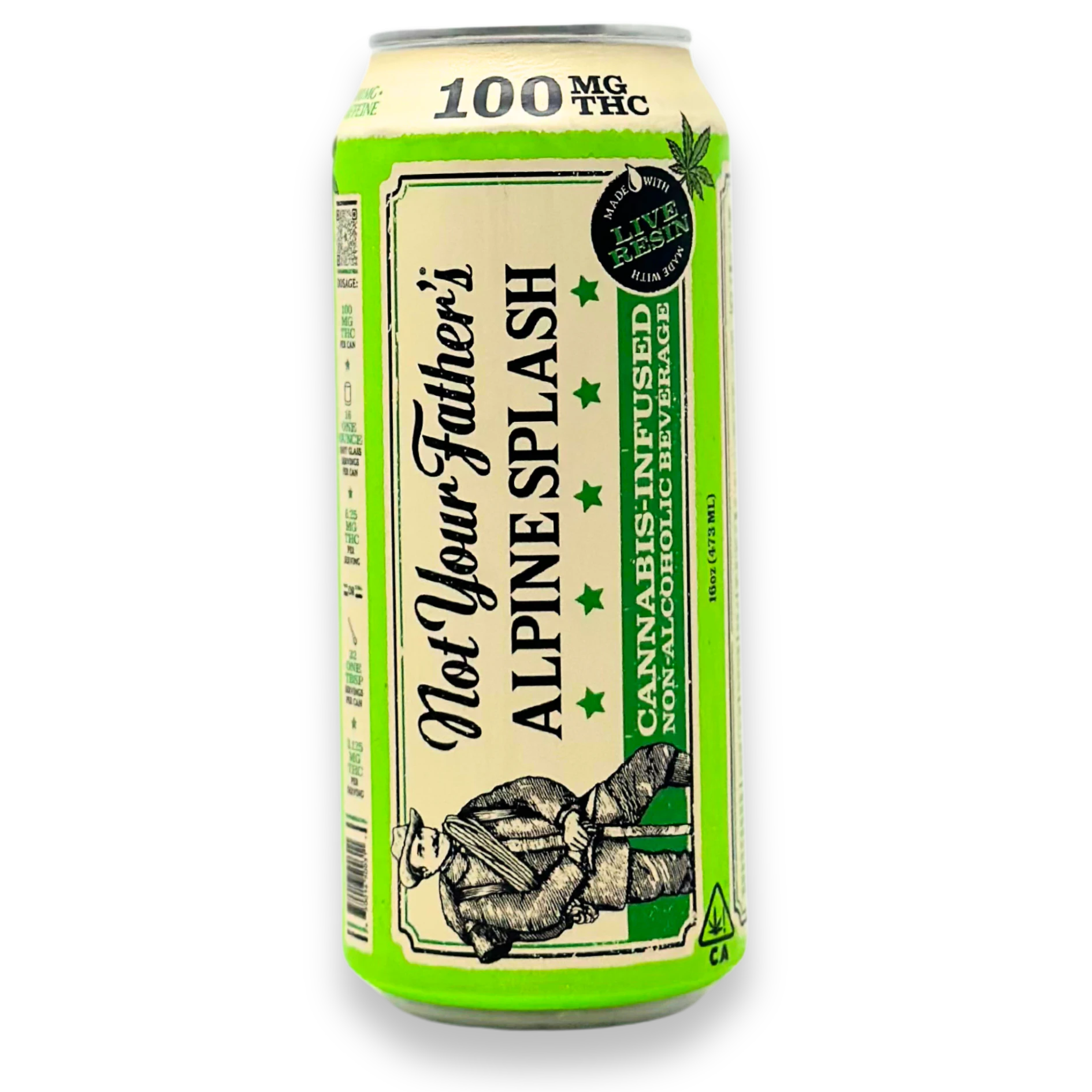 Introducing Not Your Father's Alpine Splash, now available in 16oz cans, fully loaded with 100mg THC, signature smooth flavor, and infused with Live Resin!