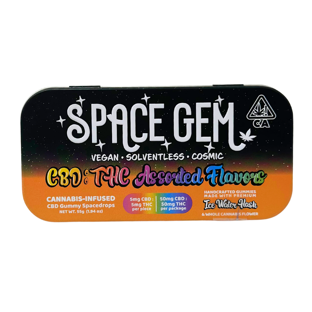 A miraculous rainbow of organic flavors to make a mouthwatering vegan gummy. Made with whole cannabis flower infusion for CBD and Ice Water Hash. Each gummy contains 5mg THC : 5mg CBD plus more cannabinoids for a full spectrum high. 50 mg THC : 50 MG CBD in each 10 pack